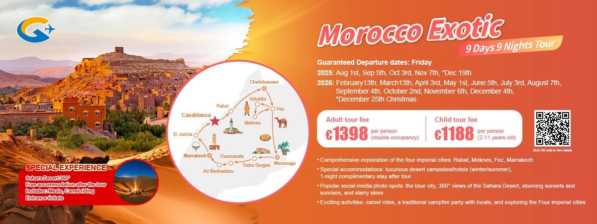 15. Morocco tour ONLY: complimentary accommodation at the last night (including breakfast)! Self-check-out time is 12:00 pm. If participating tour members decide to join the tour group to participate in meals, visit scenic spots or self-paid activities, all fees and tickets must be purchased through the tour guide.